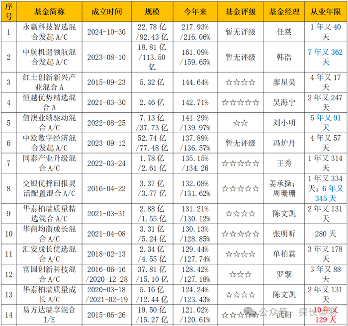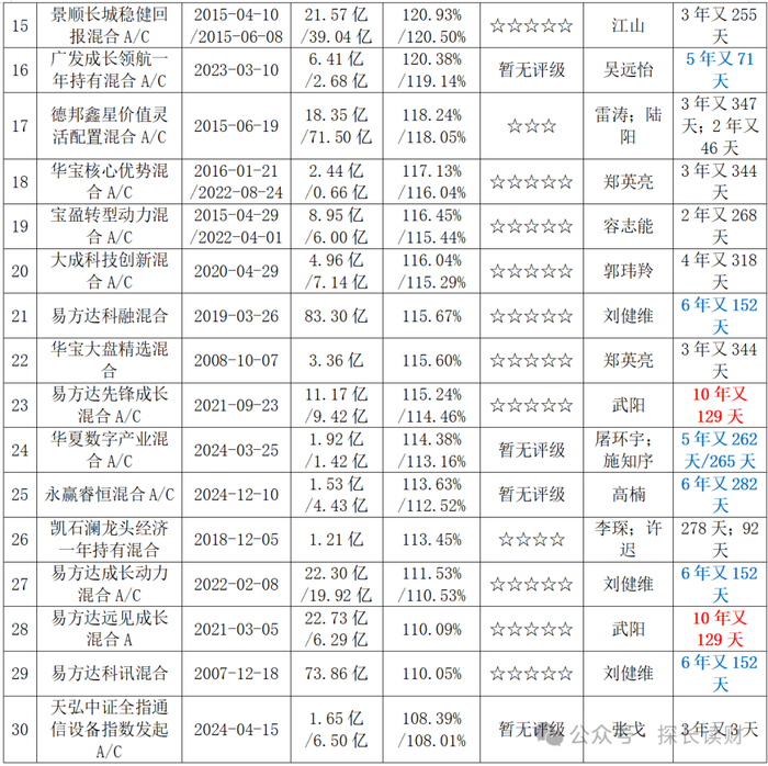 很显然,基民想要买到“翻倍基”不能只看基金评级,也不能只看基金经理从业年限。也不能只看基金规模,统计结果显示,30只准翻倍基中,多只基金规模不足2亿元,也有基金规模超90亿元。