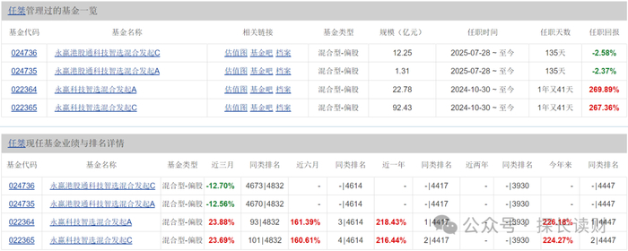 任桀累计任职时间刚超过1年,管理过的4只基金中,有2只基金任职回报超260%,2只基金任职亏损不到3%。毫不夸张地说,任桀大概率是2025年的“冠军基金”缔造者,也是公募基金行业的一匹黑马。