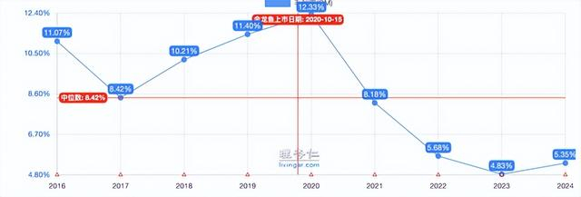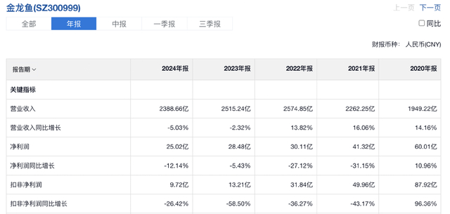 正是这样抠成本、抠细节,金龙鱼才可以在整体毛利只有10%左右的行业里挣钱(2021-2024比较特殊,上游原材料价格暴涨导致公司毛利大跌,不过2024已经开始回升),哪怕是2021-2024这么特殊的几年,依然不亏损。
