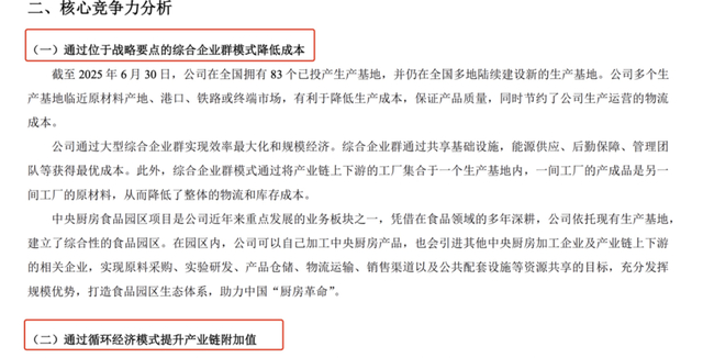 公司在财报就提到,“中央厨房食品园区项目是公司近年来重点发展的业务板块之一,凭借在食品领域的多年深耕,公司依托现有生产基地, 建立了综合性的食品园区。在园区内,公司可以自己加工中央厨房产品,也会引进其他中央厨房加工企业及产业链上下游的相关企业,实现原料采购、实验研发、产品仓储、物流运输、销售渠道以及公共配套设施等资源共享的目标,充分发挥规模优势,打造食品园区生态体系。”