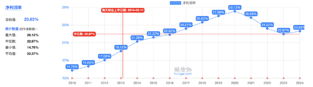 厨房用品中,金龙鱼所参与的米面油算是赚吆喝不赚钱的,但同属厨房用品的调味品其实蛮赚钱。典型如海天,除去同金龙鱼一样不太正常的2021-2024,正常情况下就是40%+,还在不断往上走。