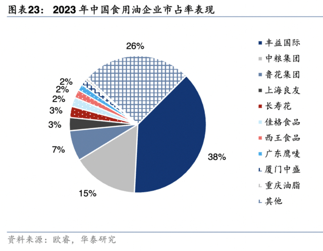 可即便如此,金龙鱼依然打趴了中粮集团,在食用油、大米、面粉三大细分品类做到第一。以食用油为例,下图的丰益国际就是金龙鱼背后的母公司,市场份额占了38%,中粮才15%,至于后面的老三就完全排不上号了。