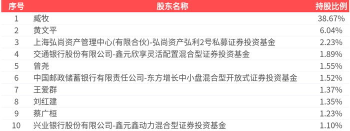 公司股东户数为4295户,前十大股东持股数量为7671.85万股,占总股本比例为56.95%,前十大股东持股情况如下: