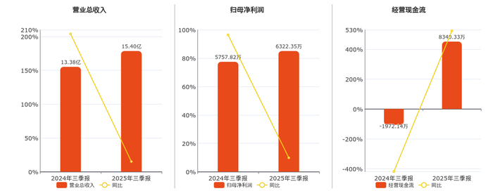 公司营业总收入为15.40亿元。归母净利润为6322.35万元。经营活动现金净流入为8340.33万元。