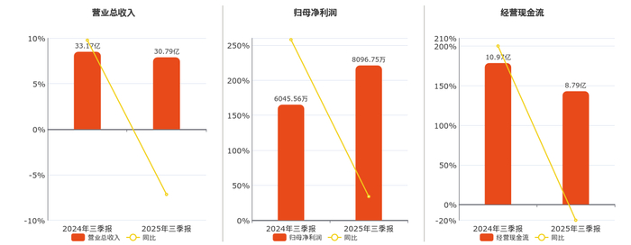 公司营业总收入为30.79亿元。归母净利润为8096.75万元,较去年同报告期归母净利润增加2051.19万元,实现2年连续上涨,同比较去年同期上涨33.93%。经营活动现金净流入为8.79亿元。