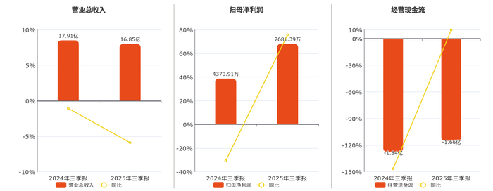 公司营业总收入为16.85亿元,在已披露的同业公司中排名第9。归母净利润为7681.39万元,较去年同报告期归母净利润增加3310.49万元,同比较去年同期上涨75.74%。经营活动现金净流入为-1.66亿元,较去年同报告期经营活动现金净流入增加1784.23万元。