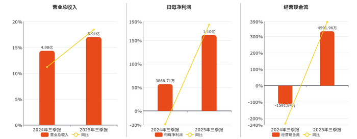 公司营业总收入为5.91亿元,在已披露的同业公司中排名第19。归母净利润为1.10亿元。经营活动现金净流入为4591.96万元。