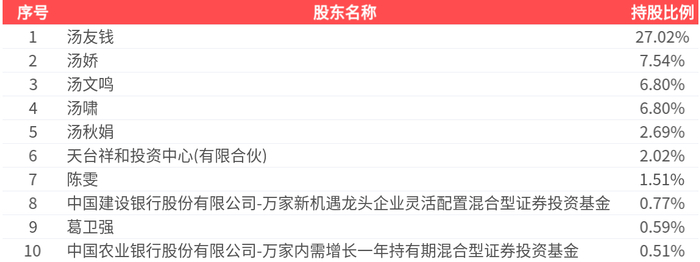 公司股东户数为1.74万户,前十大股东持股数量为1.87亿股,占总股本比例为56.26%,前十大股东持股情况如下: