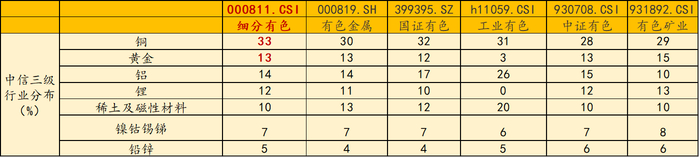 2、“金铜含量”同类领先:有色50ETF(159652)标的指数铜含量达33%,金含量达13%,金铜含量高达46%,同类领先!