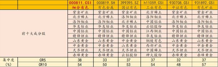 风险提示:基金有风险,投资需谨慎。投资人应当阅读《基金合同》《招募说明书》《产品资料概要》等法律文件,了解基金的风险收益特征,特别是特有风险,并根据自身投资目的、投资经验、资产状况等判断是否和自身风险承受能力相适应。基金管理人承诺以诚实信用、谨慎尽责的原则管理和运用基金资产,但不保证基金一定盈利或本金不受损失。以上基金属于中等风险等级(R3)产品,适合经客户风险承受等级测评后结果为平衡型(C3)及以上的投资者。请投资者关注指数化投资的风险以及集中投资于细分有色指数成分股的持有风险,请关注部分指数成分股权重较大、集中度较高的风险,请关注指数化投资的风险、ETF运作风险、投资特定品种的特有风险等。文中提及个股仅为指数成份股客观展示列举,本文出现信息只作为参考,投资人须对任何自主决定的投资行为负责。本文中的任何观点、分析及预测不构成对阅读者任何形式的投资建议。
