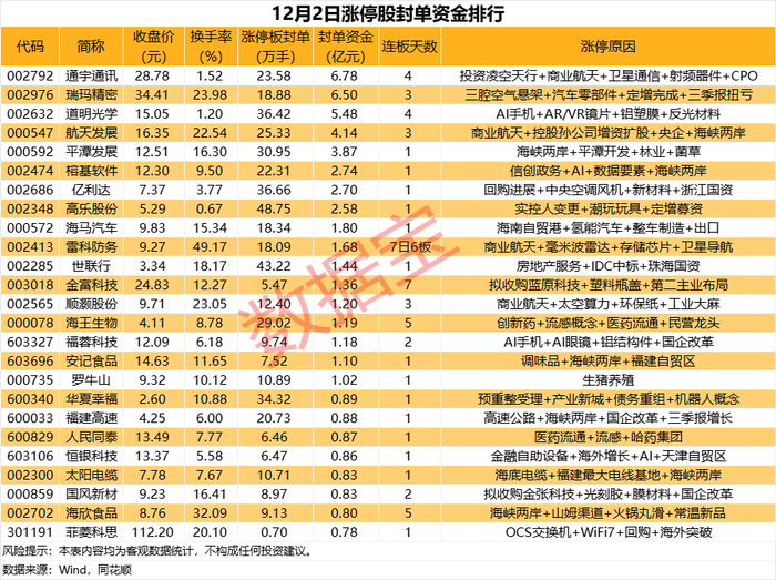 通宇通讯封单资金居于首位