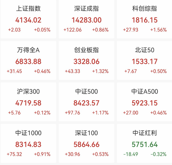 今日(2月12日),A股全天窄幅震荡。截至收盘,沪指小幅上涨0.05%,最新报4134.02点;深证成指上涨0.86%;创业板指上涨1.32%。全天成交21607.71亿元,较昨日放量1597.28亿元。