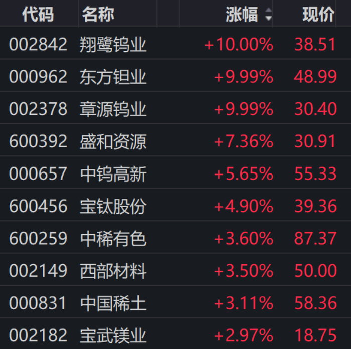 小金属指数今日大涨2.72%,位于同花顺行业指数涨幅榜第二位。成份股中,翔鹭钨业、东方钽业、章源钨业涨停;盛和资源、中钨高新涨逾5%。将时间线拉长,近5个交易日内,小金属指数累计涨幅已逾10%。