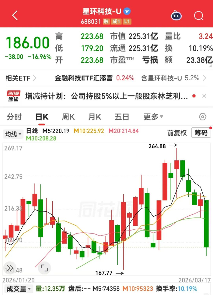 3月17日早盘,AIGC概念股星环科技-U(688031)小幅低开,开盘后股价迅速下跌,盘中触及“20cm”的跌停板。截至上午收盘,该股下跌16.96%。