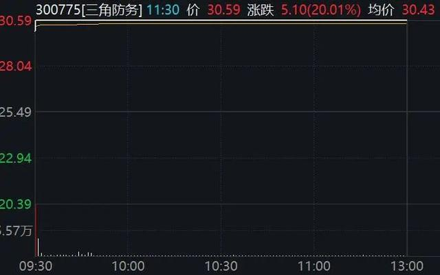 国防军工股今日整体高开高走,航空装备方向领涨,板块指数放量大涨逾2%,开盘不到1小时成交就超过昨日全天成交。三角防务高开后秒速20%涨停,航发科技、派克新材等亦强势涨停。