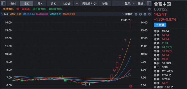 盘面上来看,合富中国今日成交额也明显放大,全天放量成交近18亿元,是前一日的接近23倍,换手率超过30%。合富中国也强调,11 月6 日公司股票换手率突增至 31.50%,股票交易显著放量,击鼓传花效应明显。