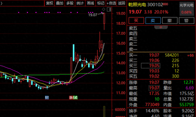 盘初,商业航天概念走强,乾照光电20cm涨停,通宇通讯2连板,顺灏股份、普天科技、雷科防务涨停,新雷能、航天环宇、航天宏图跟涨。