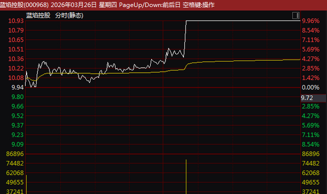 市场热点方面,受中东地缘政治冲突影响,国际原油价格一直在100美元/桶的高位震荡,A股油气开采板块跟随上下波动,今日午后油气开采概念股再度出现放量拉升的走势,蓝焰控股(000968)盘中垂直封涨停,首华燃气、洲际油气等也均出现异动拉升走势。