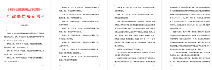 针对以上问题,广东证监局决定对广东华铁通达高铁装备股份有限公司责令改正,给予警告,并处以500万元罚款;对宣某国给予警告,并处以950万元罚款;对张某给予警告,处以250万元罚款,并采取5年市场禁入措施;对王某卫、韩某麟给予警告,并分别处以80万元罚款;对王某给予警告,并处以75万元罚款;对明某、初某权、石某山给予警告,并分别处以65万元罚款;对唐某明、段某、梁某超给予警告,并分别处以60万元罚款;对张某涛给予警告,并处以55万元罚款;对耿某给予警告,并处以50万元罚款。