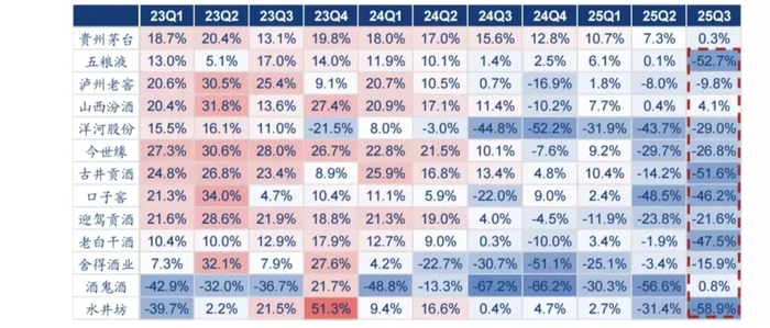 从A股酒企Q3报表来看,除了茅台和汾酒还能保持营收与利润的增长外,其它多数企业都出现的收入和利润的双下滑,五粮液、舍得、古井贡等龙头酒企利润下滑幅度超过60%,洋河股份单季利润已经转负,同环比降幅都超过150%,形势之严峻清晰可见。