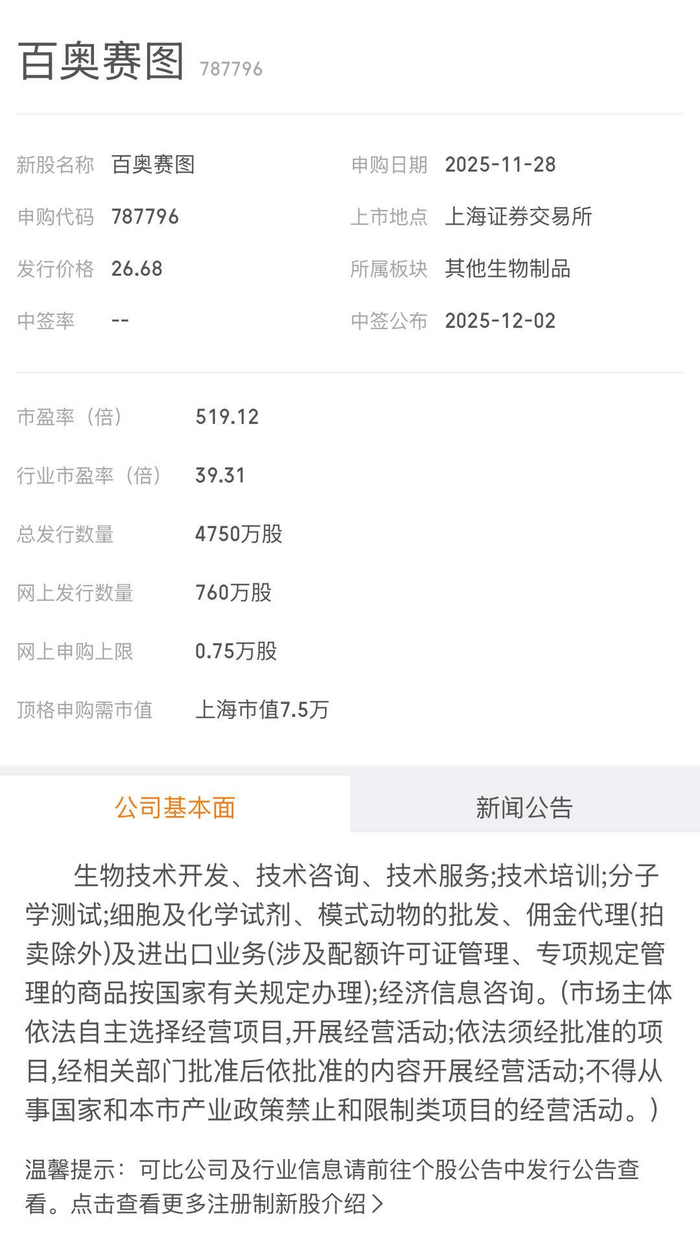 今天有一只新股申购。