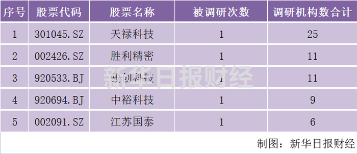 本周被机构调研的江苏上市公司,按照近5天机构调研家数排名,调研机构家数较多的公司为天禄科技(25家)、胜利精密(11家)、骏创科技(11家)等。