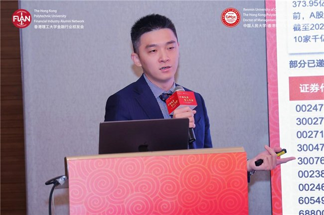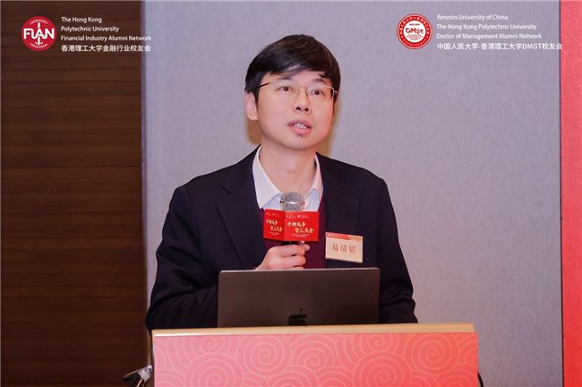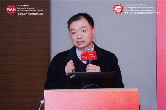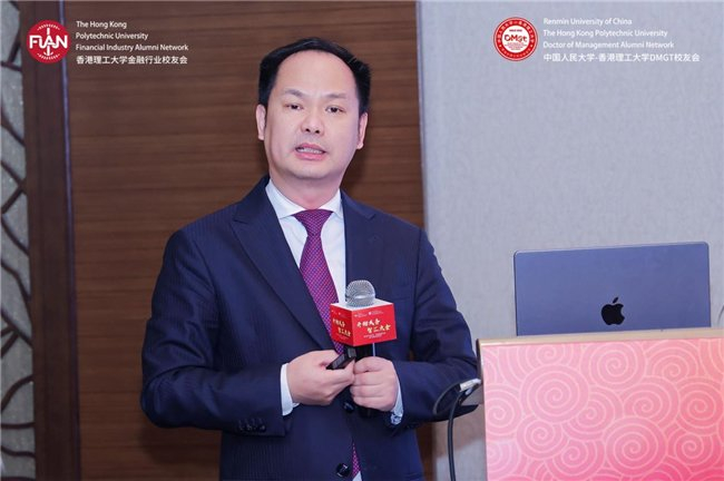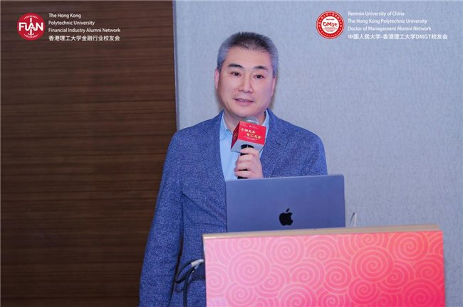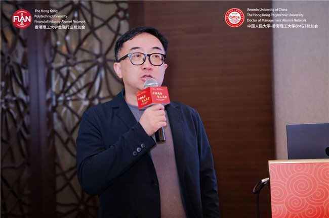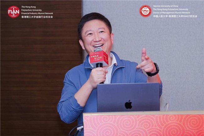 香港理工大学内地发展总监陆海天教授率先致辞。作为两获理大商学院院士奖的学者,他同时也是创业者——2024年创立香港首家跨境法律合规AI智能体公司智法数科,分享了母校对校友发展的持续支持。