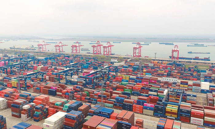 3月15日,南京港龙潭港区生产场景。杨素平 摄 (视觉江苏网供图)