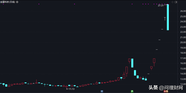 数据显示,在11月24日至12月2日期间,金富科技(003018)股价曾连续7个交易日录得涨停板,期间累计涨幅高达94.90%;12月3日其再度以涨停价开盘,尽管未能封住,但其股价最高达到27.31元,再度创历史新高,而期间累计最高涨幅更是超100%……