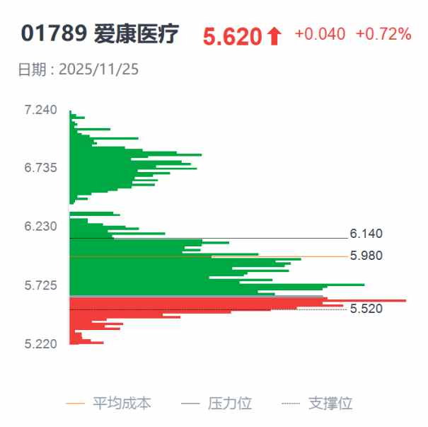 期间买方资金用部分筹码打压做盘,同时又承接抛压筹码,使其大部分筹码锁定在吸筹区域,且场内的筹码平均成本一直维持在6港元附近。截至目前,场内在5.52港元支撑位上方形成筹码峰的同时,70%和90%筹码重合率达到78.57%,说明场内筹码高度集中,股价波动幅度在技术层面会维持较低水平。而这或许将成为爱康医疗在今年“保通”的关键。