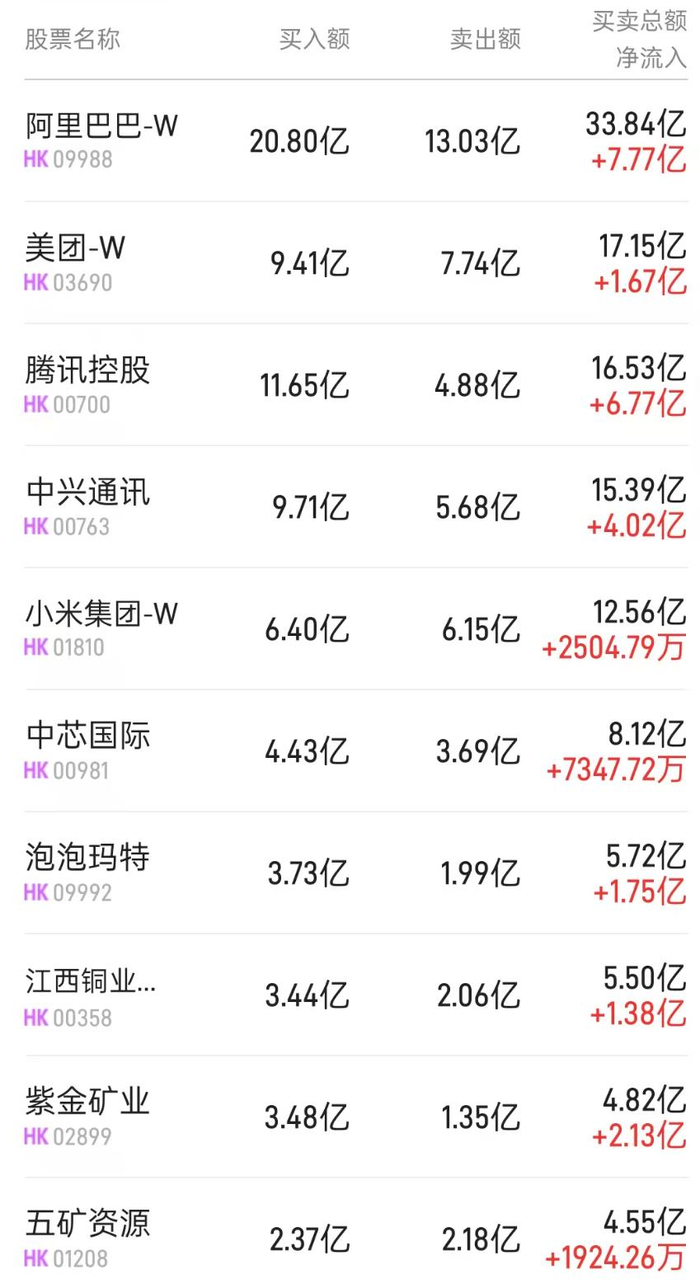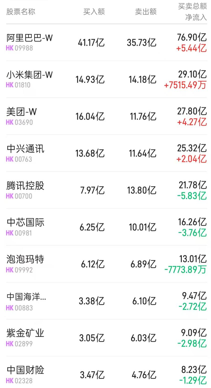 此外,美团-W(03690)、小米集团-W(01810)、腾讯(00700)分别获净买入5.94亿、1亿、9397万港元。而中海油(00883)遭净卖出2.72亿港元。