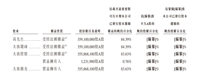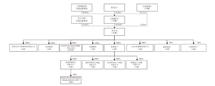 截至2025年11月30日,高先生透过大族激光持有约83.63%及大族控股持有约 0.76%的方式,拥有公司已发行股本总额约84.39%权益。大族激光由大族控股、高先生及其他A股股东分别持有15.71%、9.36%及74.93%。