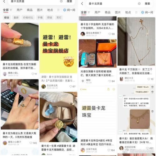 2026年1月,有消费者在现场购买黄金首饰,反映曼卡龙商家存在“以假充真、以次充好”问题,要求赔偿损失、退赔费用。