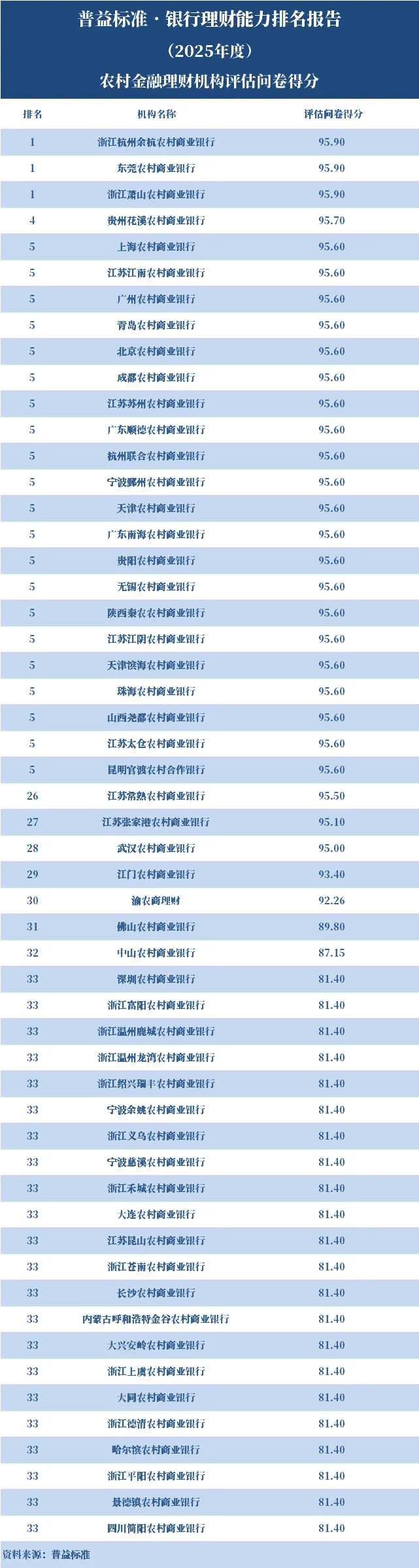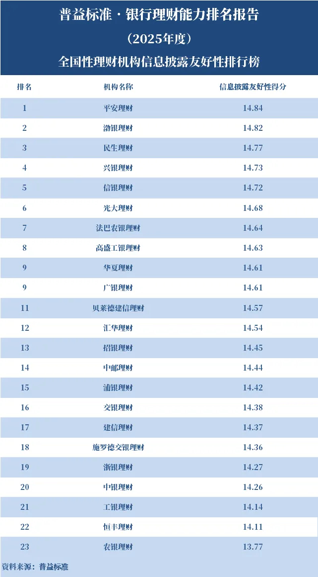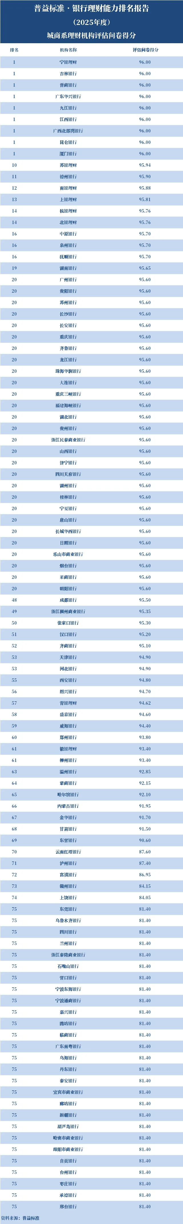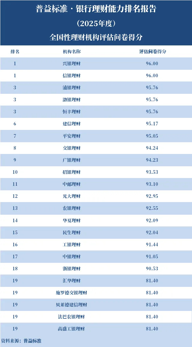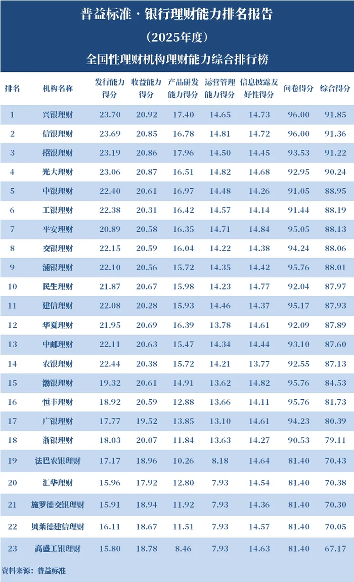2025年度,银行理财能力综合排名和单项排名结果如下: