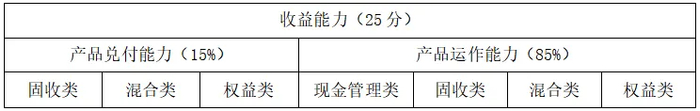 银行理财能力排名指标体系中,收益能力考察各理财机构到期产品收益兑付能力和存续产品收益运作能力。其中到期产品收益兑付能力考察各理财机构不同类型封闭式到期产品的兑付收益和兑付收益达标率情况;存续产品收益运作能力考察各理财机构在存续管理产品区间运作情况方面,分产品类别和期限类别考察不同存续产品的运作情况,现金管理类产品仅考察区间收益,非现金管理类产品(固收类、混合类、权益类)按期限划分,中短期限产品(6个月以内产品)考察过去三个月情况、长期限产品(6个月及以上产品)考察过去六个月情况,每一细分类别产品考察指标包括:区间收益、收益胜率(周度区间正收益占比)、下行标准差、最大回撤。