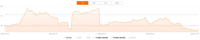 从估值来看,目前指数PE为37倍,与历史数据相比处于中性位置。在今年牛市背景下,目前37倍的估值已是年内较低点。若后续出现板块轮动,该指数具备一定的上行空间。