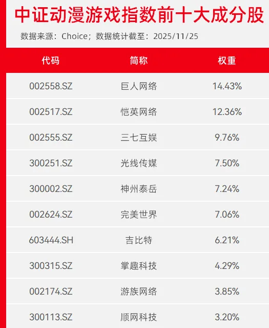 按申万二级行业分类,该指数跟踪的游戏行业权重达到84.56%,主要成分股几乎囊括了A股市场上所有游戏企业。