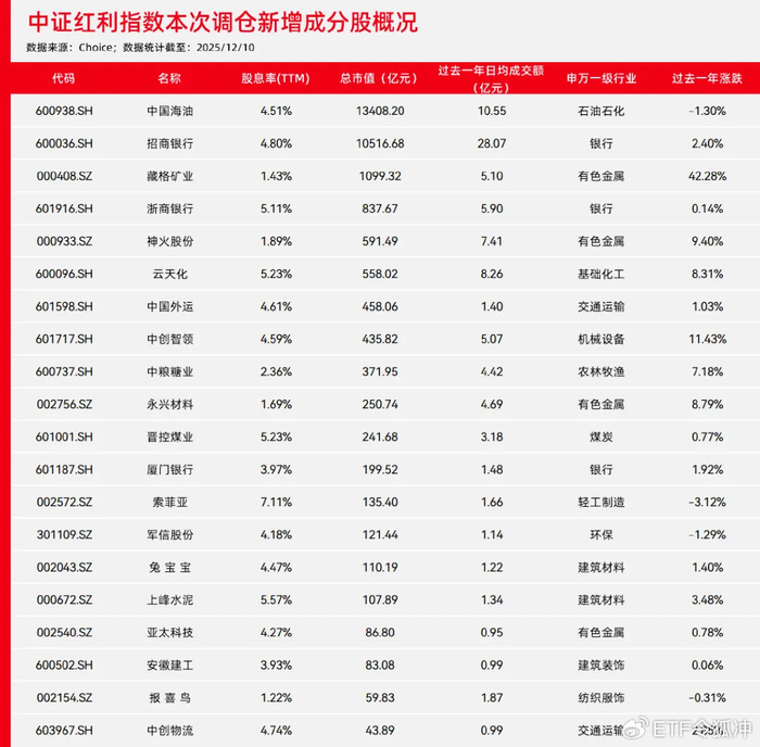 不妨一起详细看下本次中证红利指数(000922.SH)调仓情况。