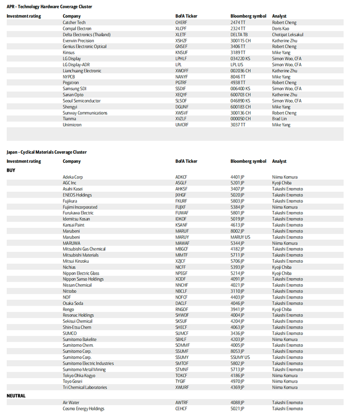 报告中还列入了一些股票的评级。