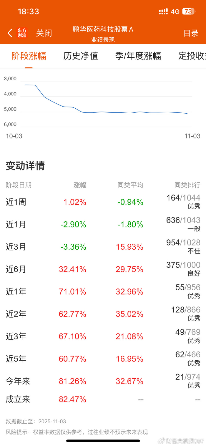 今天来分享的这只产品是——鹏华医药科技(001234),这是鹏华基金基金经理管理金笑非的产品。这只基金成立时间超过10年,目前来看,成立以来业绩涨了82.47%,目前累计净值1.8247元,成立以来业绩我很难评价,因为成立时间不短了,穿越了好几次牛熊,也没有翻倍。很可能是因为这是一只医药医疗行业主题型基金,受到行业轮动的影响,所以总的来说涨幅不高?但是阶段性业绩很强?反正侦探君今年买了这只产品,赚了一点钱,感觉还是可以的,金笑非的业绩也很不错,今年医药表现也很不错。