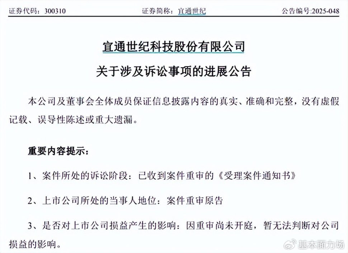 再说回到本次宜通世纪最新发布的涉诉进展公告,也与此案有关,但目标不是直接责任人,而是一位被认定为“帮凶”的“外围人员”。