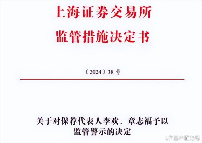 再往后,上交所2024年6月21日公布的《关于对保荐代表人李欢、章志福予以监管警示的决定》显示,李欢作为海通证券指定的武汉格蓝若智能技术股份有限公司首次公开发行股票并在科创板上市申请项目保荐代表人之一,在保荐工作中存在保荐职责履行不到位的情形,决定对其采取监管警示措施。