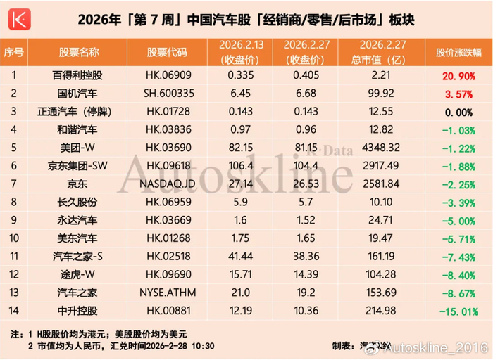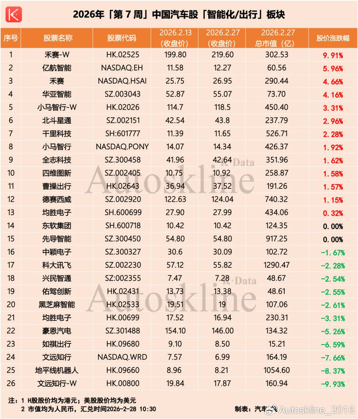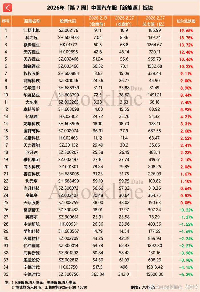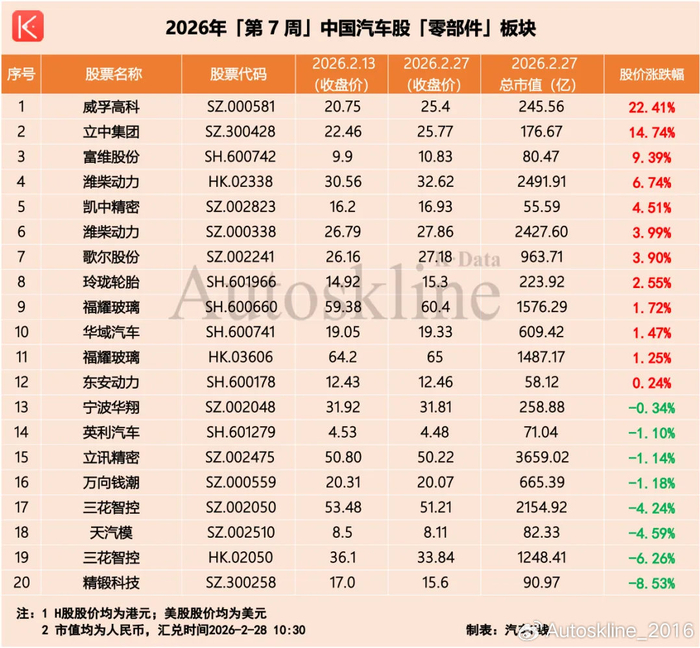 伴随2026年第7周落下帷幕,2月汽车股也圆满收官。