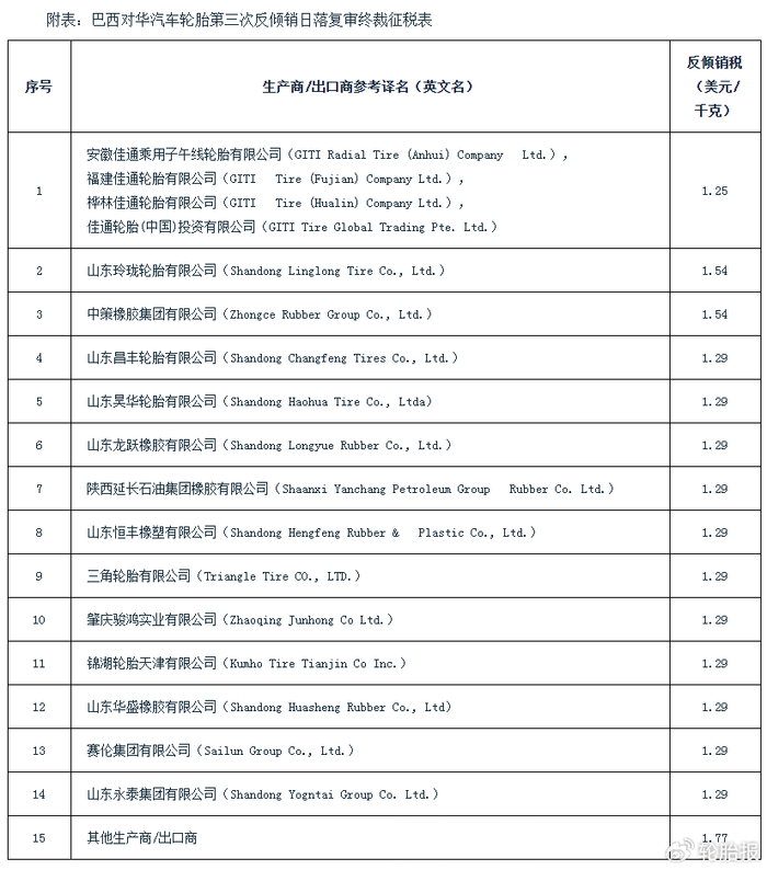 对于佳通、玲珑、中策橡胶、三角轮胎等深耕国际市场的轮胎巨头而言,尽管此次摩托车轮胎反倾销税并非直接针对其汽车轮胎产品(此前巴西已对特定汽车轮胎征收反倾销税),但整体贸易环境的恶化无疑增加了其在巴西乃至整个拉美市场的不确定性。
