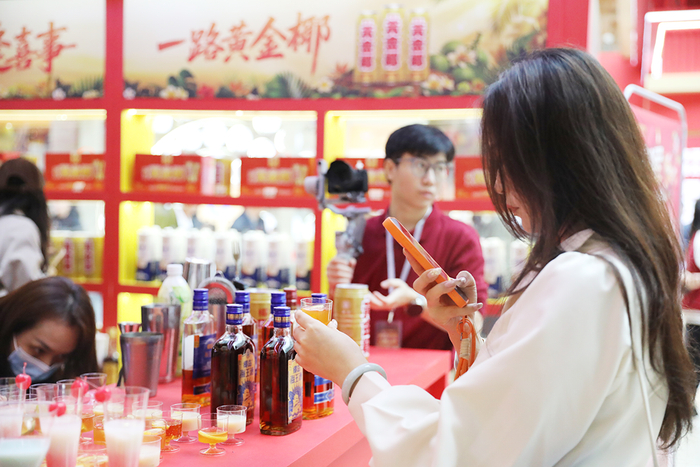 春糖期间,海南椰岛专业调酒师在现场调制创意特饮,用花式调酒全方位展现新酒饮的特点。还有黄金椰汁清甜爽口、炭烧咖啡醇厚浓郁,各类多样酒饮全天供应,让消费者玩得嗨喝得爽。