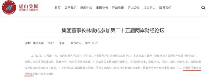 有媒体截图,今年10月,他还参加了第二十五届两岸财经论坛。