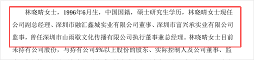 公开信息显示,林晓晴出生于1996年6月,硕士研究生学历。
