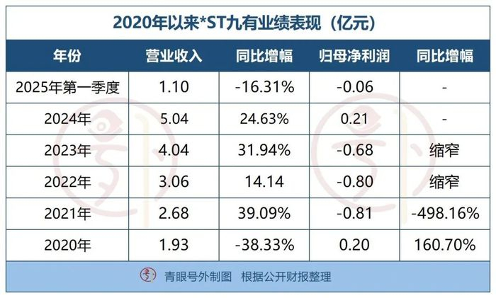 青眼号外梳理了*ST九有近年来的业绩表现发现,尽管公司营收整体呈增长趋势,但盈利能力波动较大,经营稳定性存疑。