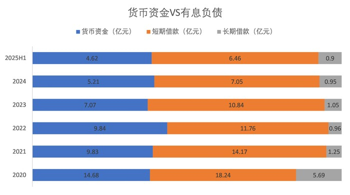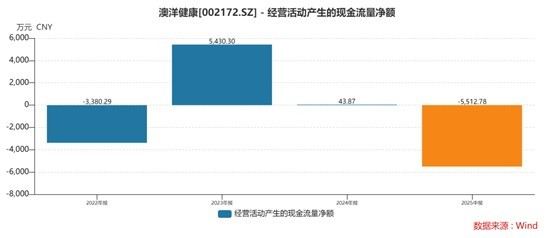 图片来源:WInd、界面新闻研究部制图现金流的“失血”状态更令市场担忧。上半年,澳洋健康经营活动产生的现金流量净额为-5512.78 万元,尽管较去年同期-2.53亿元的窘境有78.25%的改善,公司也解释称主要因“本期以现金收付货款净额增加”,但核心经营环节的“出血”并未根本止住。更严峻的是短期偿债压力:账面货币资金4.62亿元,与6.46亿元的短期借款之间存在近2亿元缺口。