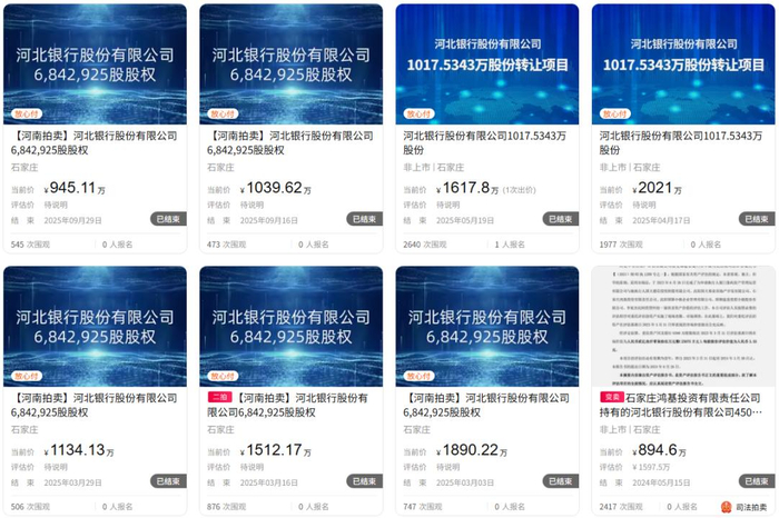 但这并不意味着河北银行的股权结构就此稳定,今年以来,河北银行股权多次被搬上拍卖平台,但均未成交。